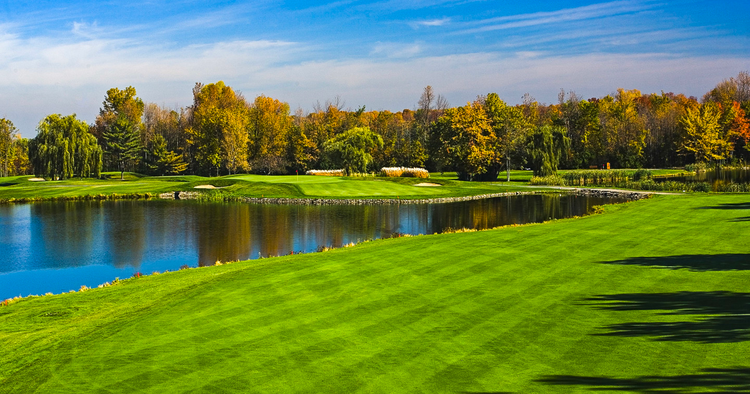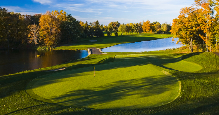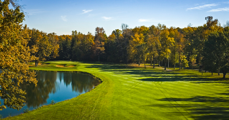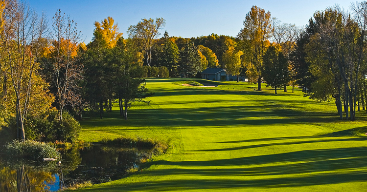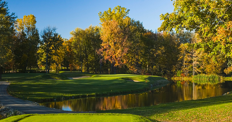 This hole has a large pond on the left side of the fairway which stretches from the green halfway back to the tee. The right side of the fairway has a mature Maple forest from tee to green. The fairway narrows in to a very tight landing area that is bunkered on the right side. Most players will lay up off the tee with a mid to long iron. The green is very narrow with three very distinct sections, with water a factor all along the left side. The front portion of the green is very small and bunkered on the right. This hole can be played from 300 yards, making it a drivable par 4.
