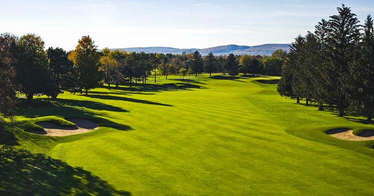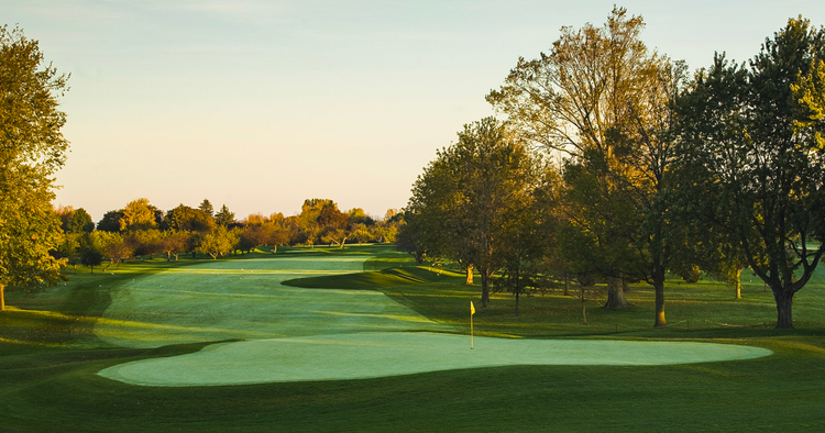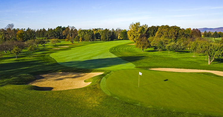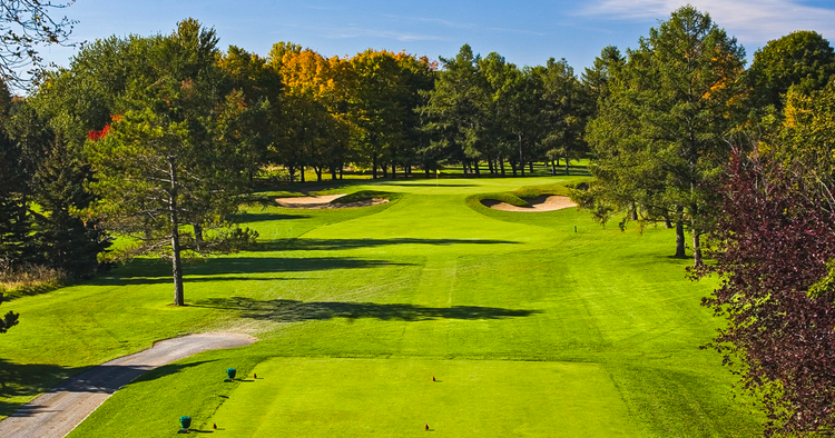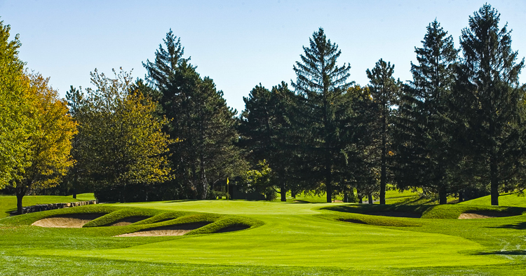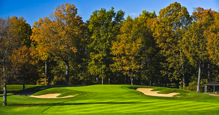 This downhill par 3 is backed by a stand of mature Sugar Maples. The green has three distinct plateaus with very demanding back pin positions. The front of the green is narrow and well bunkered on both sides.