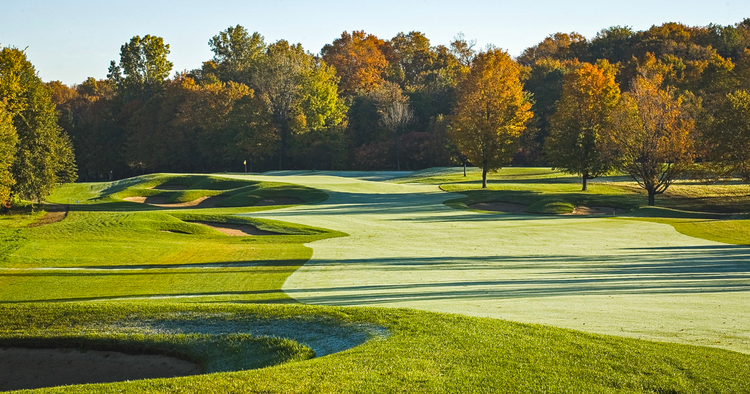 This par 5 plays slightly downhill and most often downwind. The landing area is generous and protected on the left side by a carry bunker at 280 yards, and on the right by a series of bunkers at 290 to 320 yards from the tee. The hole turns to left from the landing area. The fairway dips from this point, rising to a distinct plateau at the green. The hole is reachable in two, but is protected on the left side by step bunkers and has a strategic collection area on the right side. The green moves sharply from back to front and away from the collection area. Any pin location on the right side of the green will require a cautious approach.
